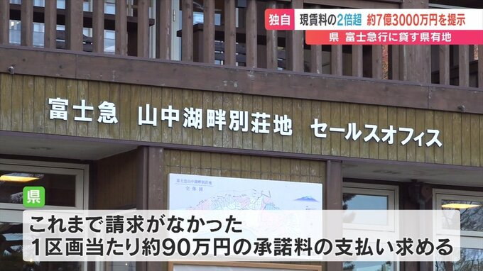 また、富士急行が土地を別荘のオーナーに貸し出す際、県の承諾が必要となりますが、これまで請求がなかった1区画当たり約90万円の承諾料の支払いも県は新たに求めています。