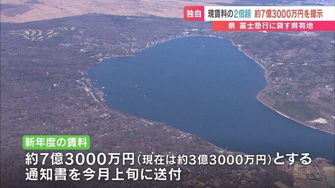 こうした中、関係者によりますと県は新年度の賃料について不動産鑑定の結果、現在の3億3000万円の2倍以上となる約7億3000万円だとする通知書を3月上旬、富士急行の代理人に送付しました。