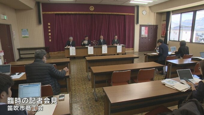 18日午後、記者会見した笛吹市商工会。
