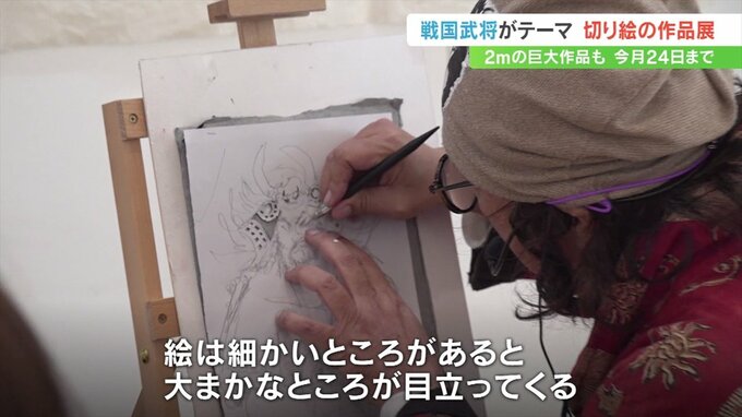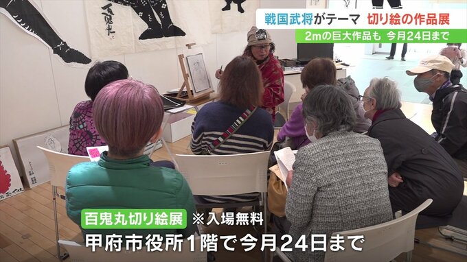 戦国武将をテーマにした切り絵の作品展が甲府市役所で始まりました。