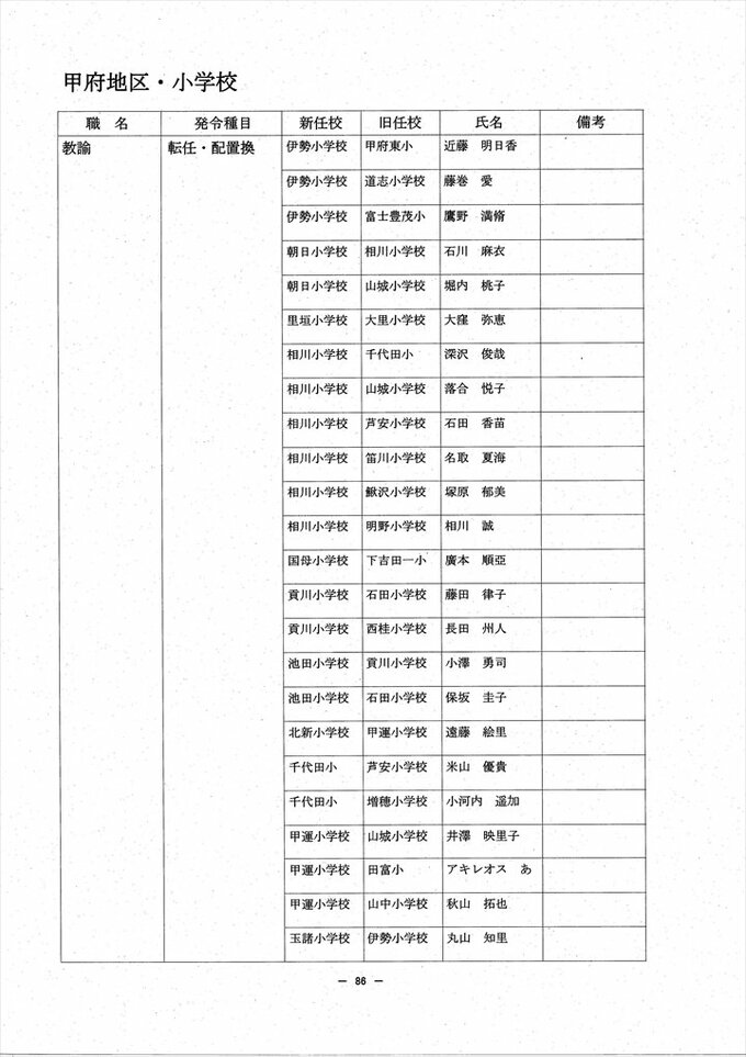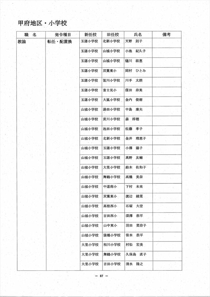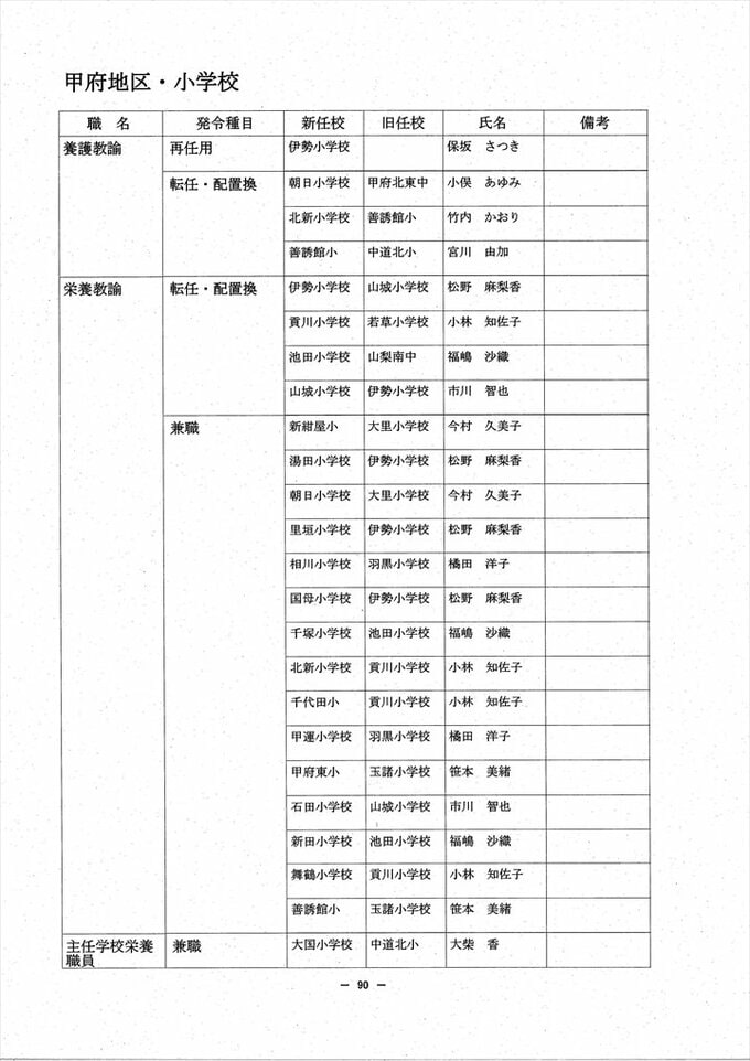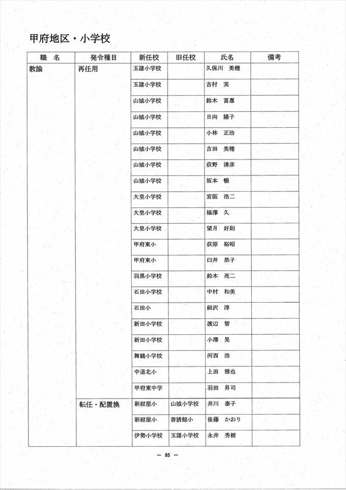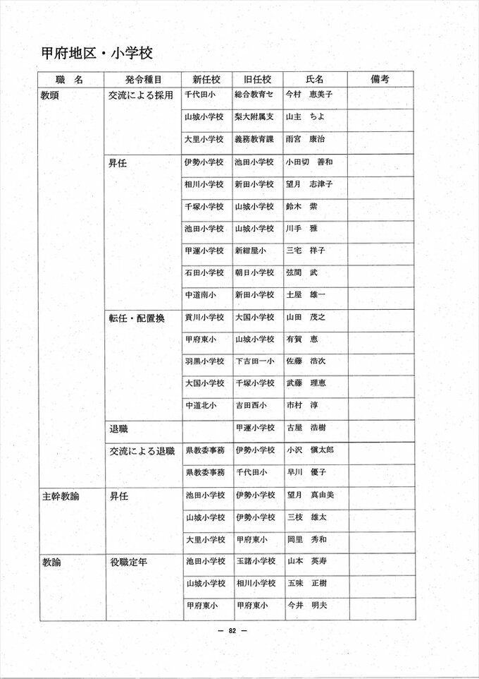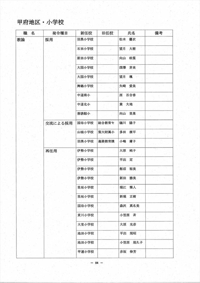 あの先生はどこへ? 2024 山梨県教職員人事異動情報 【公立小中学校 異動全名簿掲載】