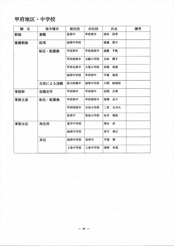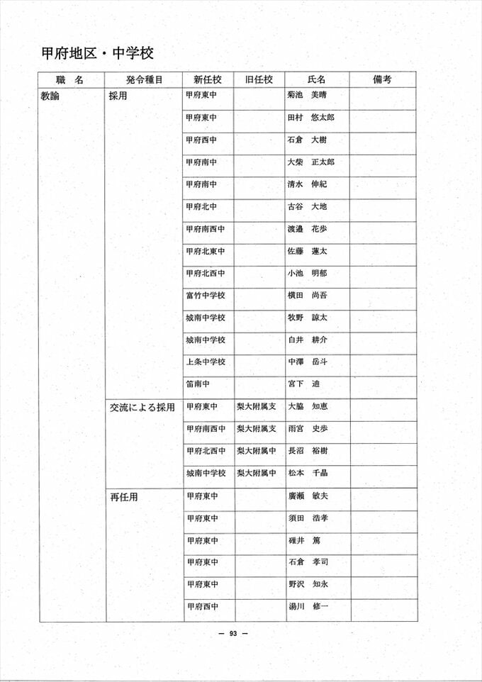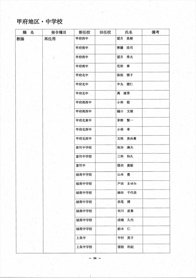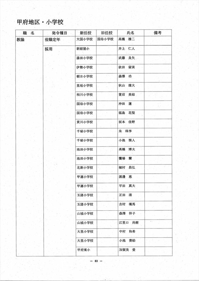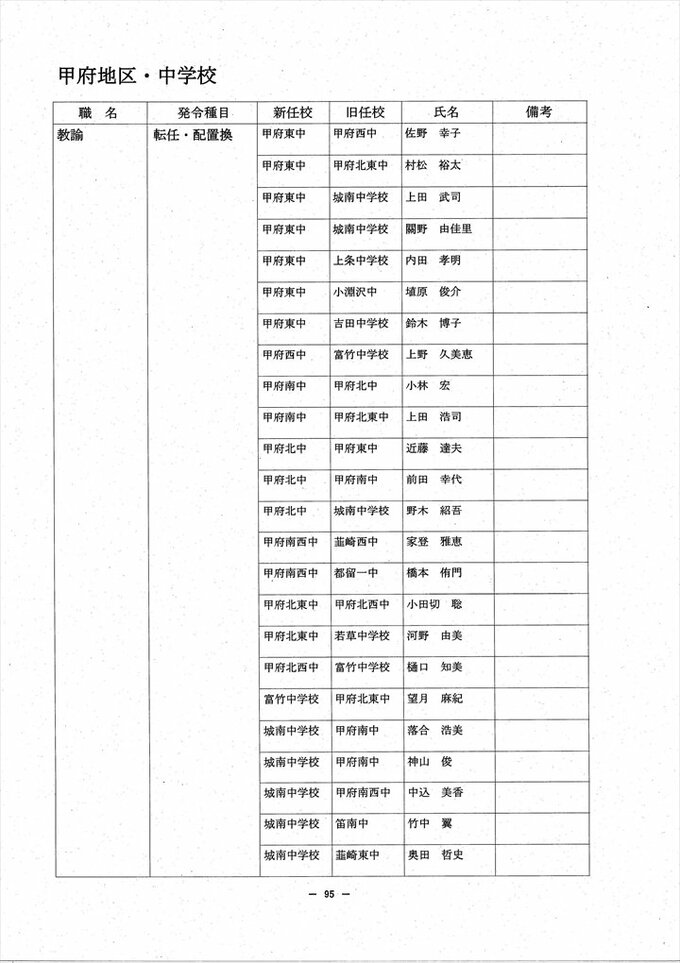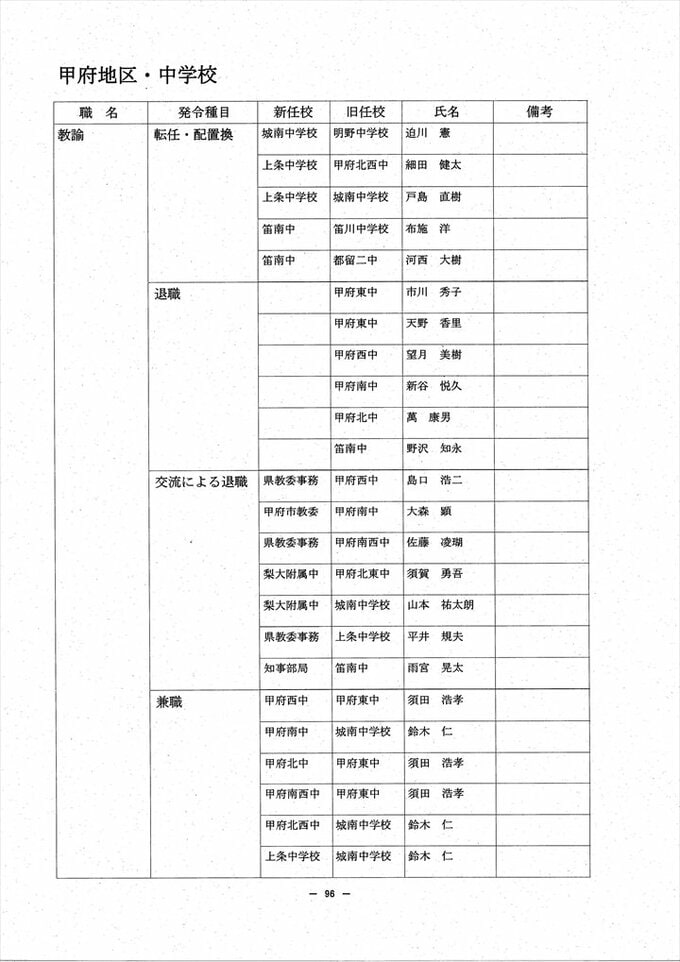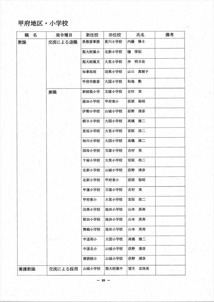 あの先生はどこへ? 2024 山梨県教職員人事異動情報 【公立小中学校 異動全名簿掲載】