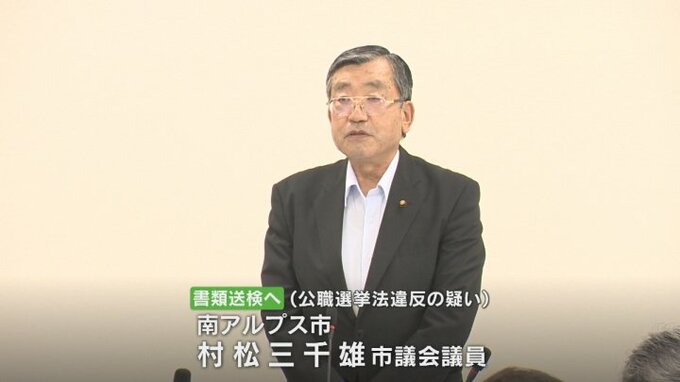 捜査関係者によりますと、公職選挙法違反の疑いで書類送検されるのは、南アルプス市の村松三千雄市議会議員です。