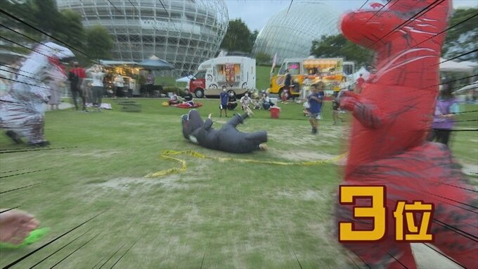 ティラノサウルス大爆走! 山梨市の笛吹川フルーツ公園でイベント開かれる 2022年7月27日(水) 21:00 国内 話題・グルメ 折角取材に来たので、三浦アナウンサーもレースに参戦。 三浦ティラノリ(正則)アナウンサー: UTYを代表して”スゴろくザウルス”も挑戦したいと思います!絶対に1位を獲るので期待していてください!ガオー! レースは「成獣の部」の予選で10頭中2位以内に入れば決勝進出です。 走っている時は全く順位が分かりませんでしたが、三浦ティラノリアナウンサーは3位。 決勝進出にはあと一歩及びませんでした。 三浦アナウンサー: 走った後はティラノサウルス仲間になったという感じで非常に気持ち良かったです。