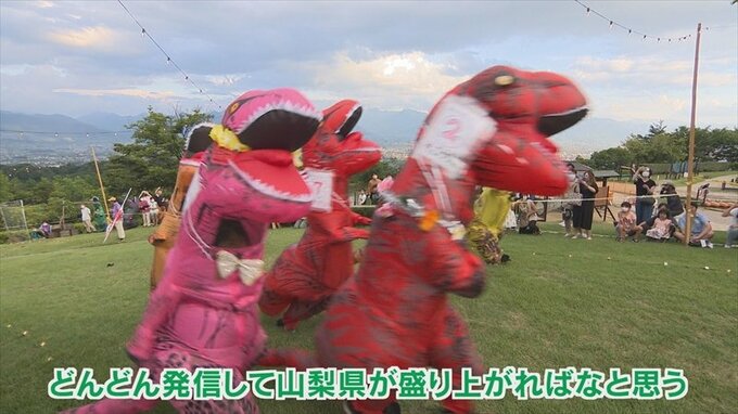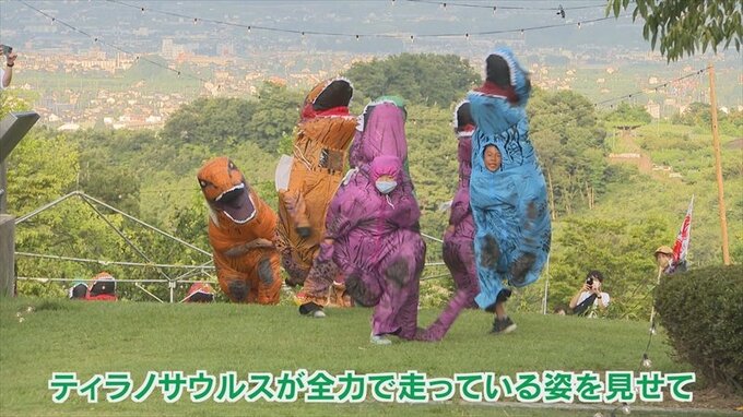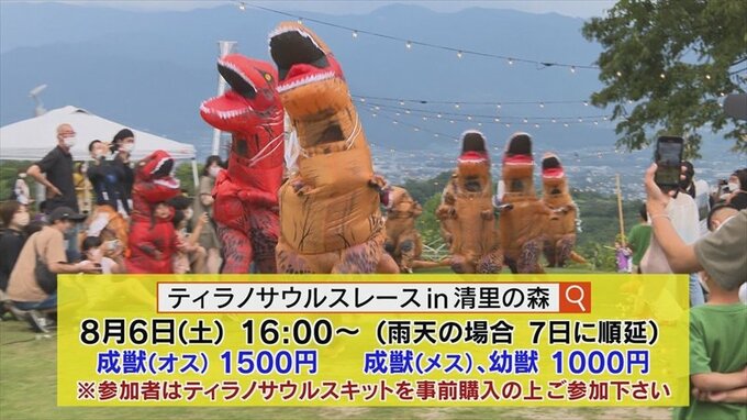 ティラノサウルス大爆走! 山梨市の笛吹川フルーツ公園でイベント開かれる 2022年7月27日(水) 21:00 国内 話題・グルメ エース栗原さん: 山梨県にはいろいろ魅力的な場所があるので、ティラノサウルスが全力で走る姿を見せて、山梨県の魅力をこのティラノサウルスをきっかけにどんどん発信して、山梨県が盛り上がればなと思います。 レースに参加したティラノも、また応援していた観客も、みんなが笑顔で楽しんでいる姿が印象的でした。 なお、この「ティラノサウルスレース」は8月6日(土)にも八ヶ岳南麓の北杜市清里にある「清里の森」で開催されます。(ティラノサウルス盆踊りもあります)