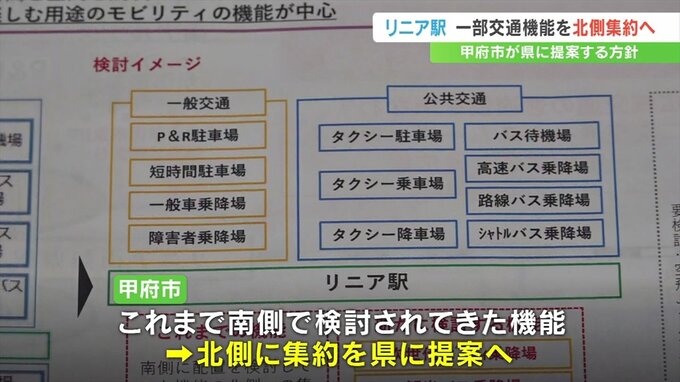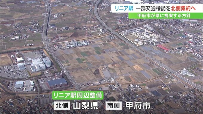 リニア駅周辺への交通アクセス機能について甲府市は、一部の機能を県が整備する北側エリアへ集約することを提案する方針を明らかにしました。