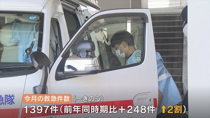 新型コロナ感染の急拡大で7月の救急車の出動要請は1397件で2021年の同じ時期より2割以上多くなっています。