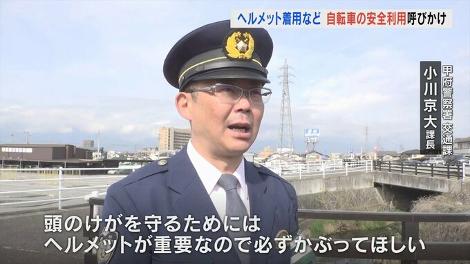 「自転車のけがの多くが頭のけがになります。頭のけがを頭を守るためにはヘルメットが重要なので必ずかぶっていただきたい」