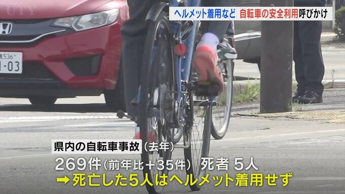 県警によりますと、自転車の交通事故は去年、269件発生していて、5人が亡くなっています。5人はいずれもヘルメットをかぶっていなかったということです。