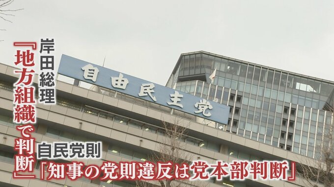 裏金事件を受けて国会議員の処分が発表されるなか、自民党籍を持つ長崎知事については岸田総理が国会答弁で「地方組織で判断する」とした一方、党則では知事の党則違反は党本部が判断するとしています。