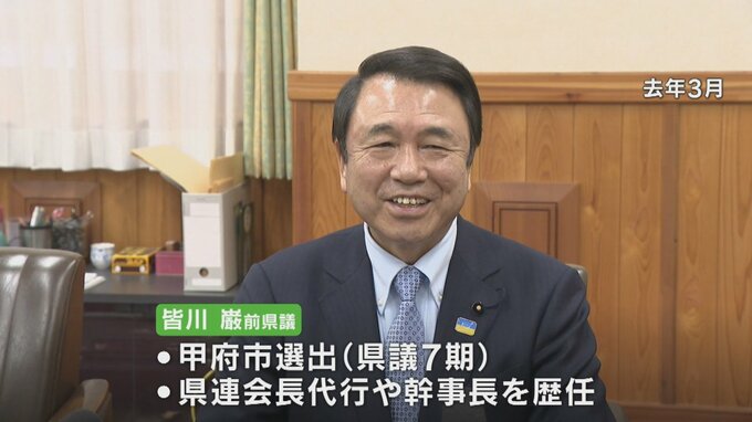 甲府市選出で県議を7期務めた皆川前県議は、県連会長代行や幹事長も務めた重鎮で、関係者からは「政治資金問題で自民党に逆風の中、次の選挙での衆院1区のテコ入れをする狙い」といった声もあります。