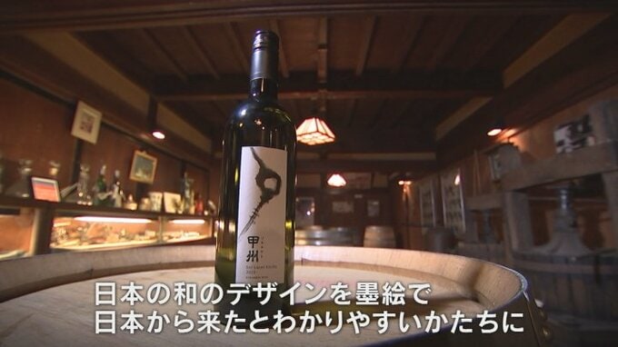 「これが輸出している甲州。日本の和のデザインを墨絵で日本から来たと分かりやすいかたちに」