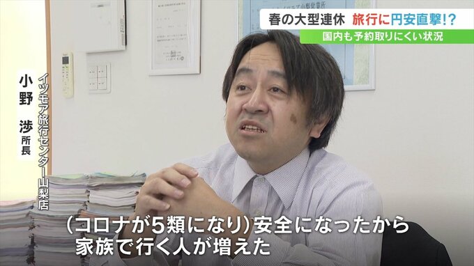 「(コロナが5類になり)安全になったから家族で行く人が増えた。気軽に行けていた台湾、韓国の旅行代金が1.5倍くらい上がっているのが実情。海外はもう少し待とうかなというお客さんが多い」