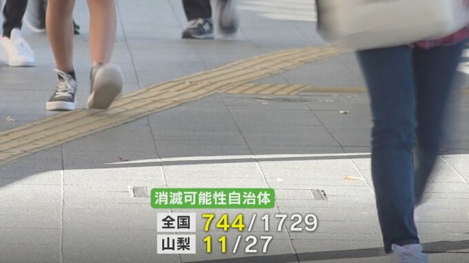 有識者などで作るグループが人口の減少に伴って将来的に消滅する可能性がある自治体を発表し、山梨県内は11市町村が該当しました。