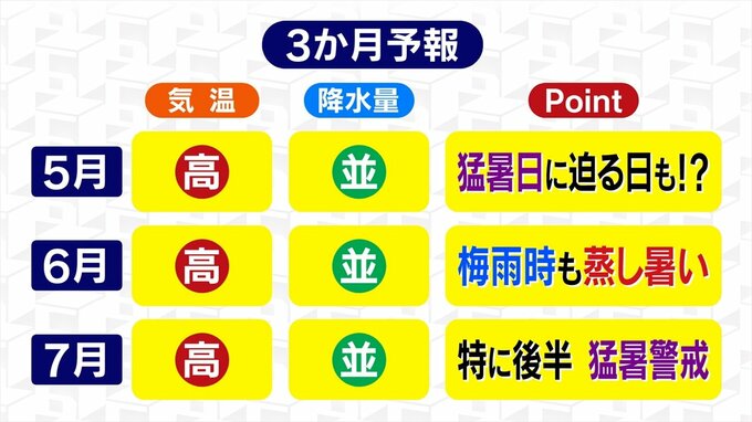 さらに7月の梅雨明け、特に後半は猛暑に厳重警戒。もしかすると40℃に迫る日も出てきてもおかしくないと見ています。