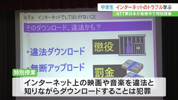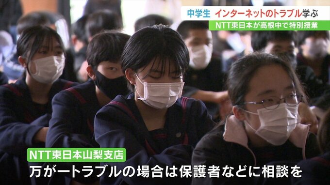 山梨県北杜市の中学生がインターネットに関するトラブルや犯罪を学びました。
