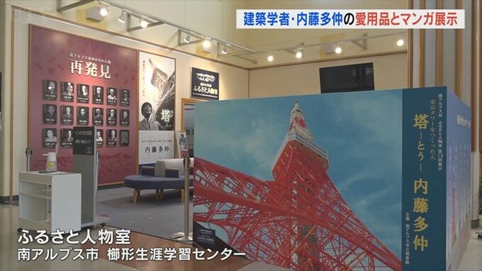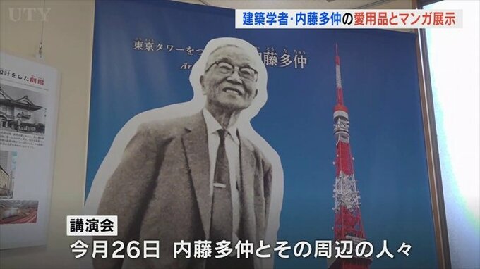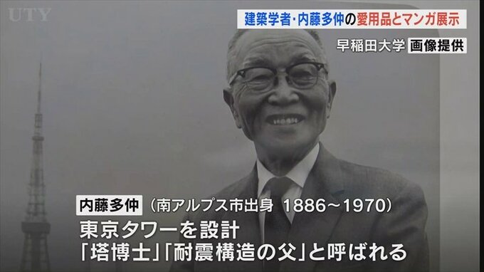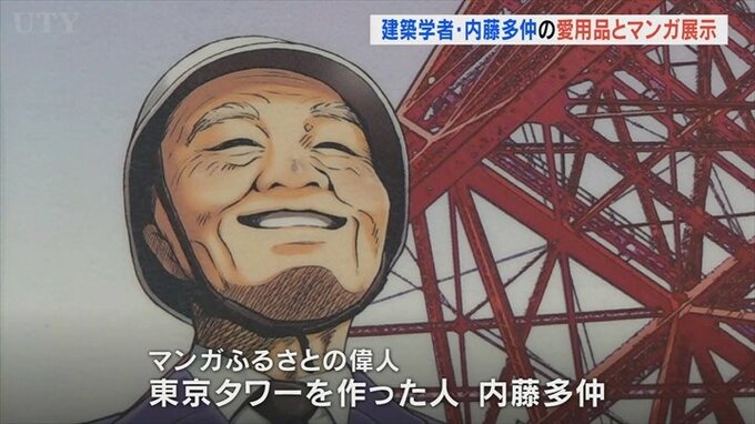 その内藤多仲の愛用品と偉業を描いたマンガの展示会が開かれています。