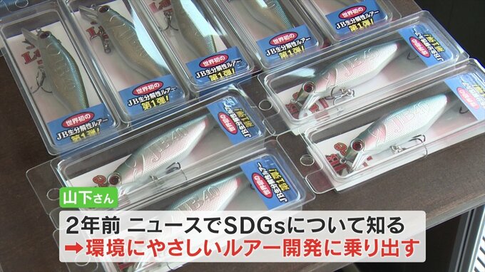 そして2年前、ニュースでSDGsについて知り、環境にやさしいルアーの開発に乗り出しました。