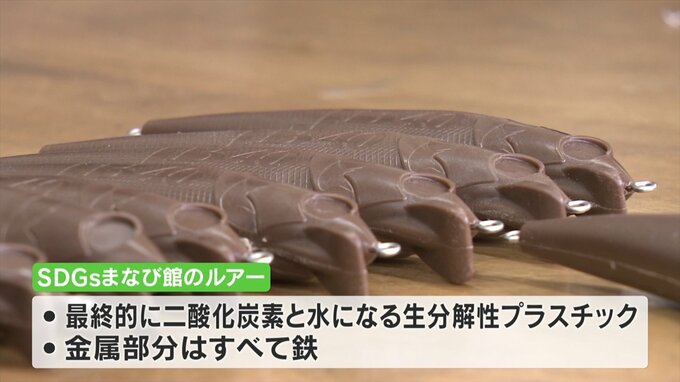 一方、この研究所で造られたルアーは微生物の働きで最終的に二酸化炭素と水になる生分解性プラスチックでできているほか、金属部分はすべて鉄のため、すべてが自然にかえるものになっています。