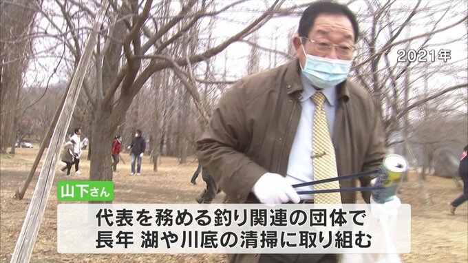 山下さんは自身が代表を務める釣り関連の団体で、 長年全国各地の湖や川底の清掃に取り組んでいます。