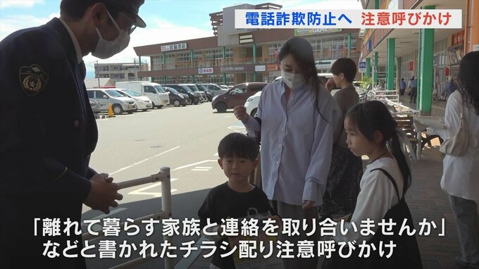 「離れて暮らす家族と連絡を取り合いませんか」などとメッセージが書かれたチラシを配り、電話詐欺への注意を呼びかけました。