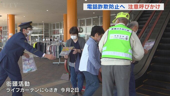 大型連休に離れて暮らす家族と連絡を取り合って、電話詐欺にあわないよう呼びかける街頭活動が行われました。