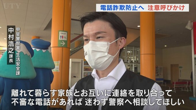 街頭活動は今月2日、甲斐警察署が防犯ボランティア団体と協力して、韮崎市にあるショッピングモールで行われました。