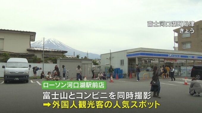 また、車で5分ほど離れた別の店舗でも駐車場内で富士山と建物を撮影する観光客がいて、コンビニの利用客から問題視する声が上がっています。