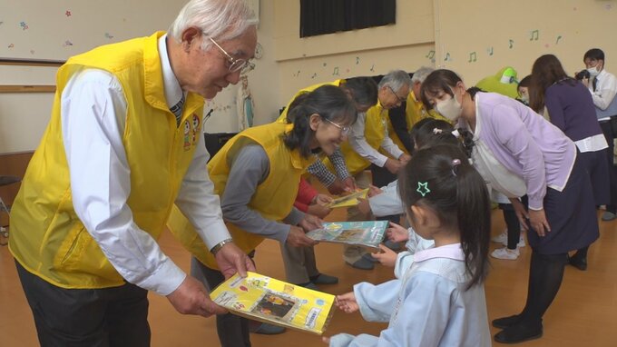 園児を対象にした人権教室の開催は初めてで園児たちは主催した団体にお礼の色紙を手渡しました。