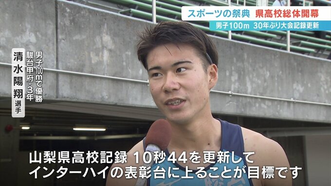 「山梨県高校記録10秒44を更新してインターハイの表彰台に上ることが目標です」