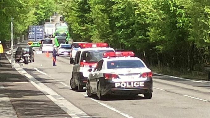 8日午前7時ごろ、富士河口湖町の国道139号を富士吉田方面に向かって走っていたオートバイが前を走っていた大型トラックの荷台に衝突し転倒しました。