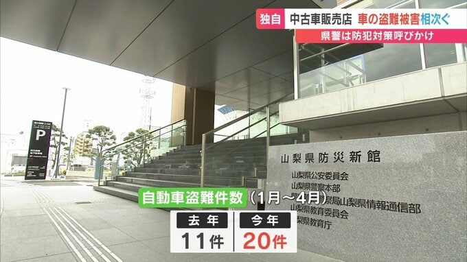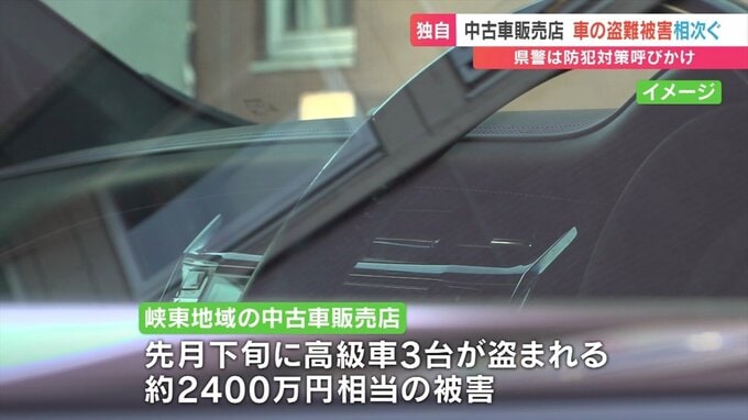 また山梨県の峡東地域の中古車販売店では4月下旬に高級車3台が盗まれ、およそ2400万円相当の被害があったことがわかりました。