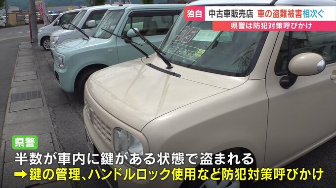 県警によりますと今年4月までの車の盗難は20件で、去年の同じ時期より9件増え、ほぼ倍増しています。