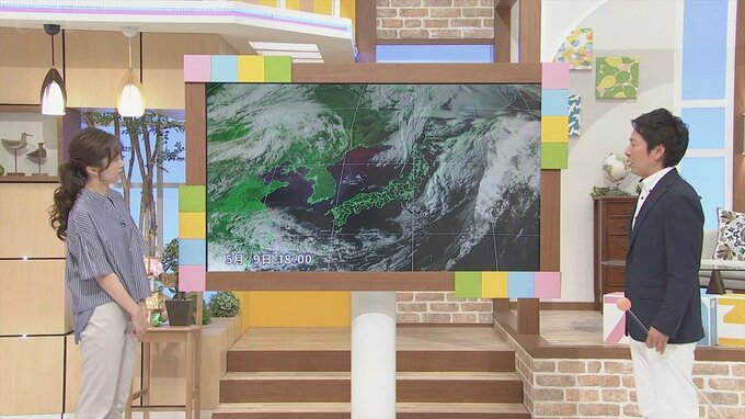 白い部分は雲、何も映ってないところは晴れていることを表します。こちらが日本列島。