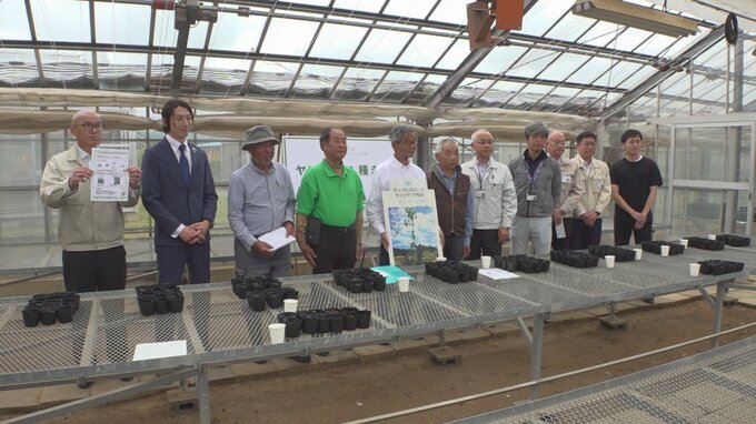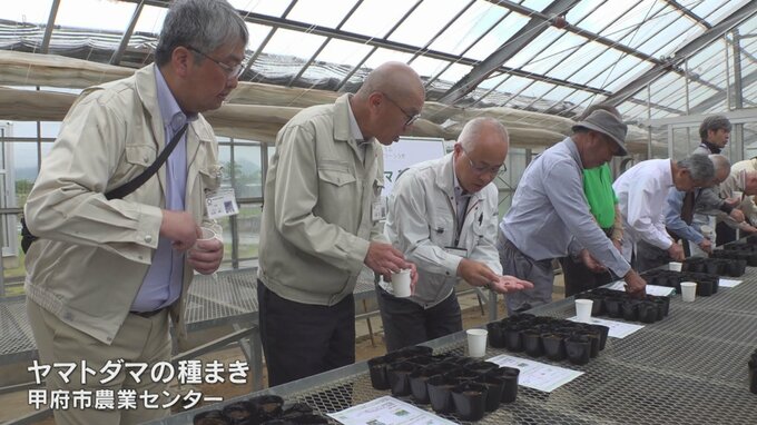 13日は関係者約20人が参加して市の農業センターに400粒の種を植えました。