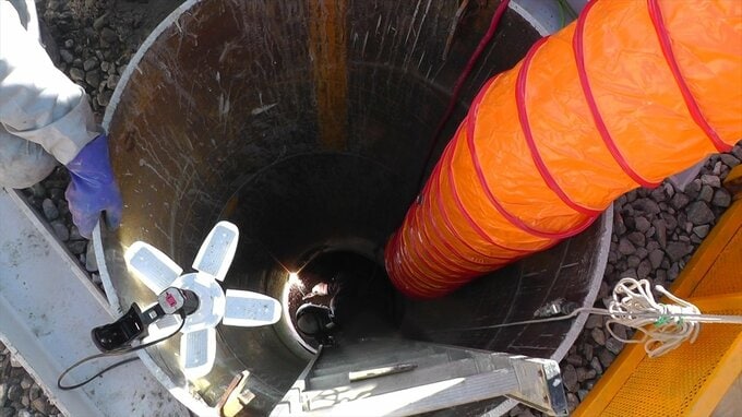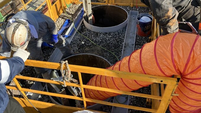 「環境にやさしい機械。この低い機械を地下に入れて、煙(排気ガス)を出さずに補強工事ができる。(建物の)上は営業をしていて、(利用客は)知らないまま基礎工事が終わっている。原価も安くできる」