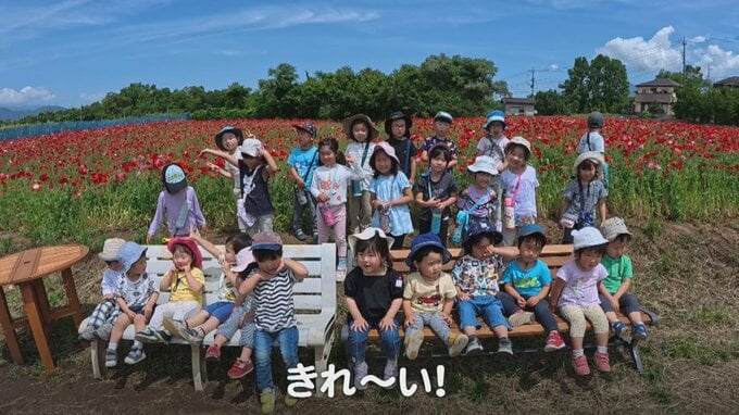 今年はテーブルとベンチも設置され、21日には地元の幼稚園児が写真を撮って楽しんでいました。