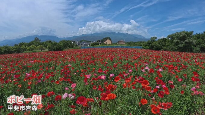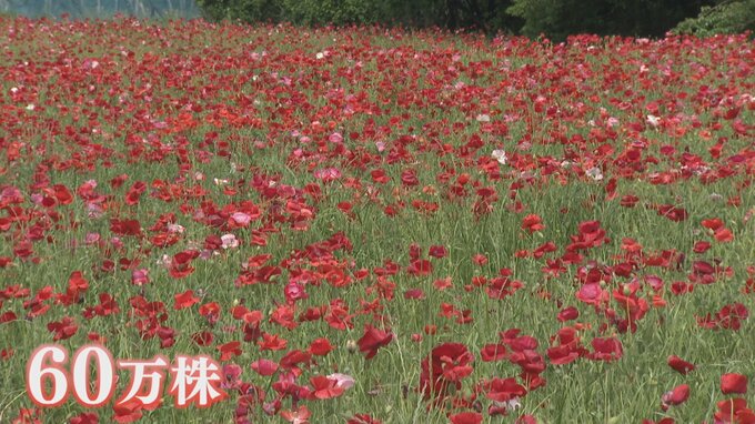 山梨県甲斐市の遊休農地で約60万株のポピーが見頃を迎えました。