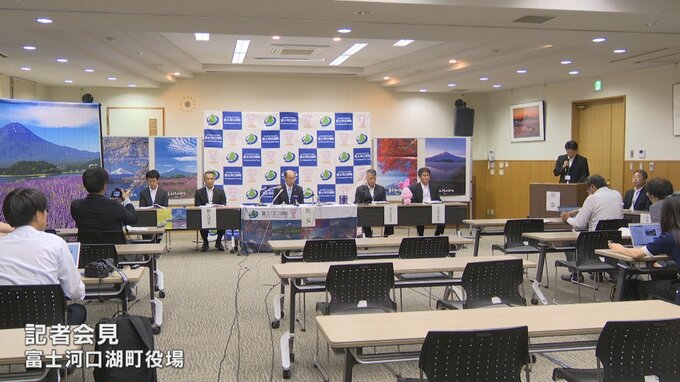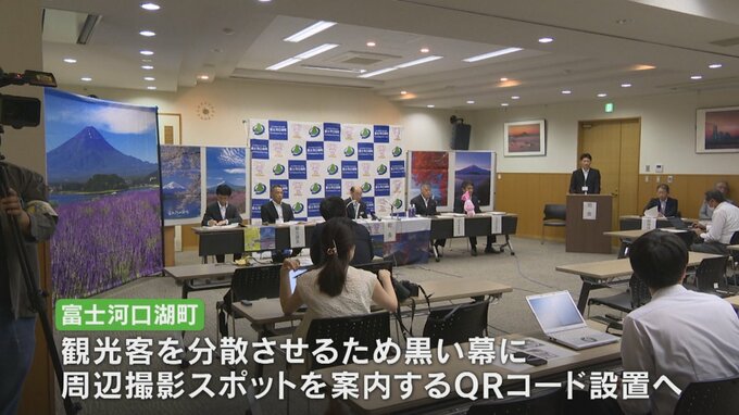 会見では幕の設置期限は設けず、観光客を分散させるため周辺の撮影スポットを案内するQRコードを幕に取り付けることを明らかにしました。