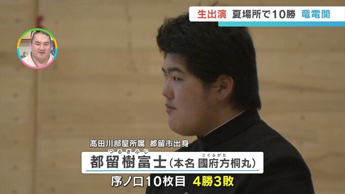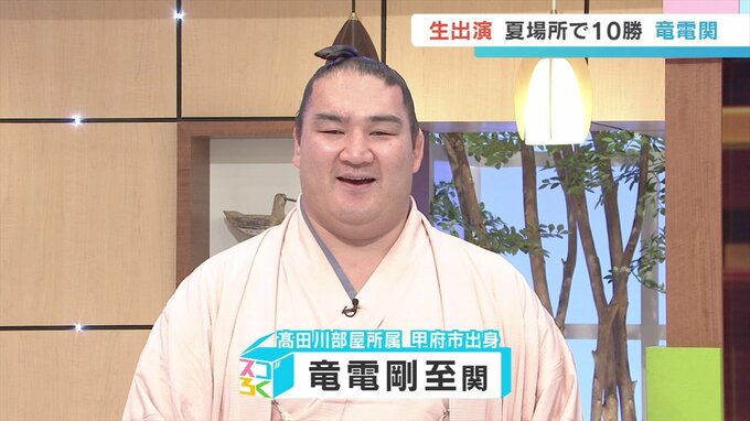大相撲高田川部屋所属で甲府市出身の竜電関にスタジオに来ていただきました。