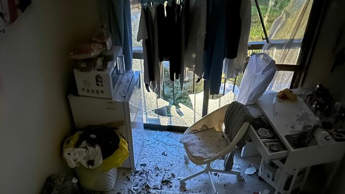 「午後7時ぐらいに風と共に雨も降ってきて、すごい音がした瞬間に窓ガラスが割れる音がした。屋根に木が刺さっていた。まさかこんなことになるとは思わなかった」