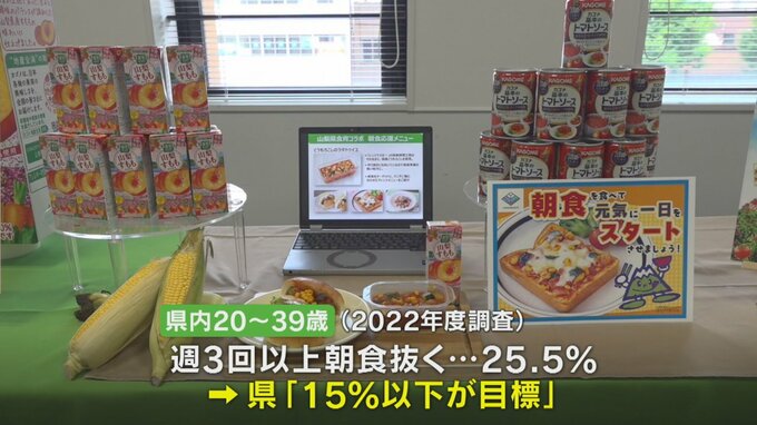 県によりますと、県内の20歳から39歳までの若者世代で朝食を週3回以上抜く人は25.5%に上っていて、朝食の習慣を改善しこの数値を15%以下に下げることを目指すということです。