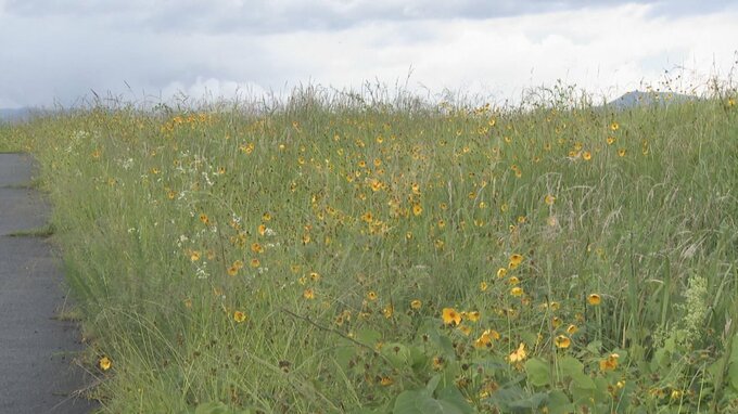 「笛吹川沿いに咲きほこるこちらの黄色い花、実は生態系に影響を及ぼすものです」
