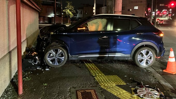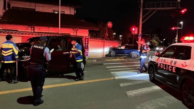 現場は甲府市伊勢の国道358号の遠光寺北交差点で、1台は壁に衝突して止まっています。
