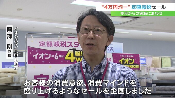 この減税を購買意欲につなげようと、山梨県昭和町の商業施設でセールが始まっています。
