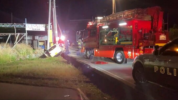 6日午後9時半ごろ、笛吹市御坂町の県道で軽乗用車が道路を外れ電柱に衝突しました。
