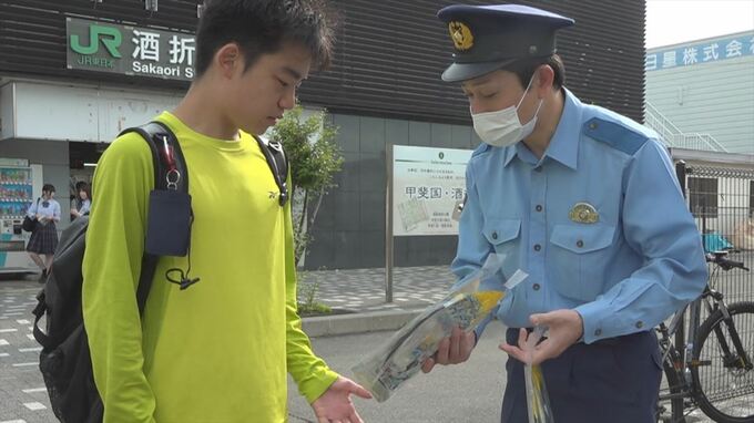 6月9日は“ロックの日” 警察と学生が自転車のロックを呼びかけ 自転車盗難の7割が無施錠 2024年6月7日(金) 11:44 国内 6月9日は「ロックの日」です。これに合わせて警察と大学生が連携して自転車への鍵かけを呼びかける防犯活動が甲府市で行われました。これは自転車の盗難被害が多く確認されているJR酒折駅で甲府警察署が実施したも…