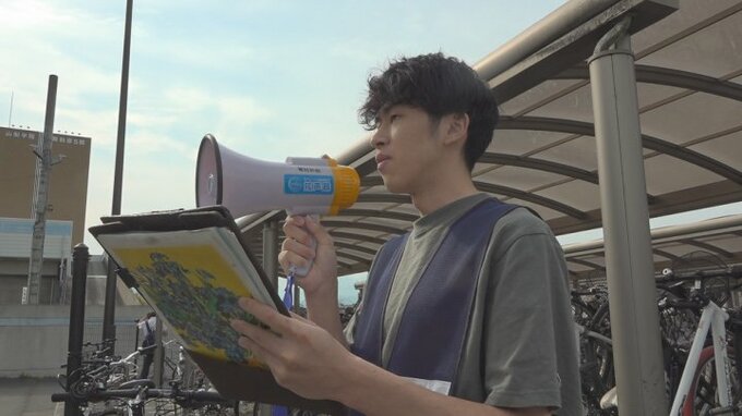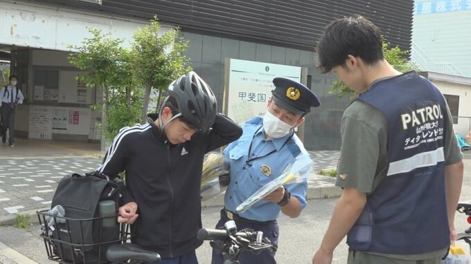 これに合わせて警察と大学生が連携して自転車への鍵かけを呼びかける防犯活動が甲府市で行われました。