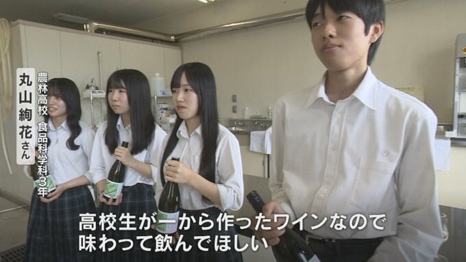 「2年生の時から作ってきたのでやっと完成できて良かった。高校生が一からつくったワインなので味わって飲んでほしい」