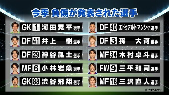 そしてやはり今シーズン気になるのが、怪我人の多さです。ヴァンフォーレ、今シーズン怪我で離脱した選手はこちらです。